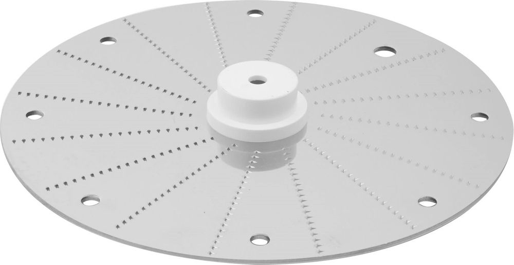 Диск-терка Robot Coupe 27078 используется совместно с овощерезками CL20, CL30 Bistro, CL40 и кухонными процессорами R211 XL и R211 XL Ultra, R301 Ultra, R402 для натирания и шинковки редьки, редиса или хрена и дальнейшего использования их в качестве ингредиента для приготовления супов, салатов, гарниров и других блюд на предприятиях общественного питания и торговли. Изделие выполнено из нержавеющей стали.