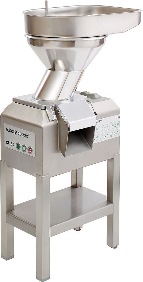 Овощерезка Robot Coupe CL60 используется на предприятиях общественного питания и торговли для нарезки овощей, фруктов, грибов, твердого сыра и колбас и дальнейшего использования их в качестве ингредиентов для приготовления супов, салатов, гарниров и пр. Модель оснащена 3 загрузочными отверстиями: широкой воронкой XL с рычагом для нарезки объёмных овощей (вмещает до 15 помидоров и качан капусты целиком), воронкой с 4 трубками, автоматической и цилиндрической - длинных и нежных.