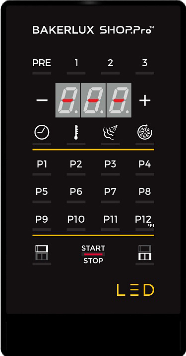 - Панель управления LED (позволяет регулировать степень увлажнения во время цикла выпекания и обеспечивает деликатную вентиляцию для выпечки особых изделий)