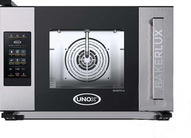 Печь конвекционная UNOX XEFT-03HS-EMRV серии BakerLux Shop.Pro предназначен для приготовления различных блюд, выпечки хлебобулочных и кондитерских изделий на предприятиях общественного питания и торговли, в пекарнях и кондитерских. Модель оснащена электронным управлением, светодиодной подсветкой и направляющими с механизмом для предотвращения опрокидывания. Легко открывающееся внутреннее стекло облегчают чистку и обеспечивает максимальную гигиену. Камера выполнена из нержавеющей стали, направляющие - из хромированной стали.
