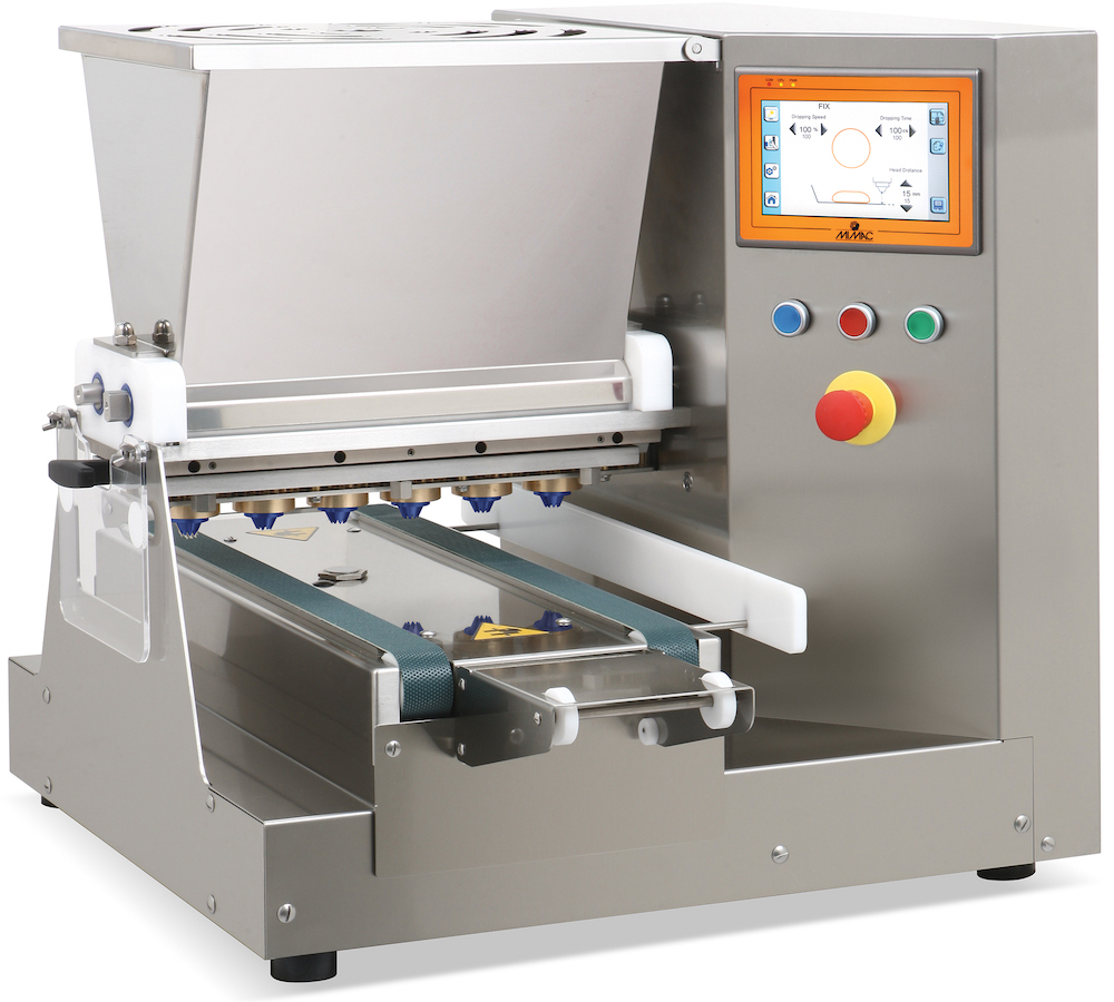 Отсадочно-дозировочная машина Mimac Babydrop 400 предназначена для производства песочного печенья, эклеров, миндального печенья, безе и пр. кондитерских изделий в пекарнях и кондитерских, на предприятиях пищевой промышленности и общественного питания. Модель оснащена микропроцессором последнего поколения и электронной сенсорной панелью управления Touch Screen размером 7 дюймов, позволяющей управлять всеми функциями и запоминать до 100 программ.