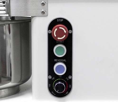 Тестомесильная машина ROAL SD-10 используется на предприятиях общественного питания, торговли и пищевых производствах для замешивания различного вида теста. Модель оснащена электромеханическим управлением - регулировка частоты вращения с помощью поворотного переключателя и месильным органом в форме спирали. Материал изготовления всех компонентов, соприкасающихся с продукцией - нержавеющая сталь.