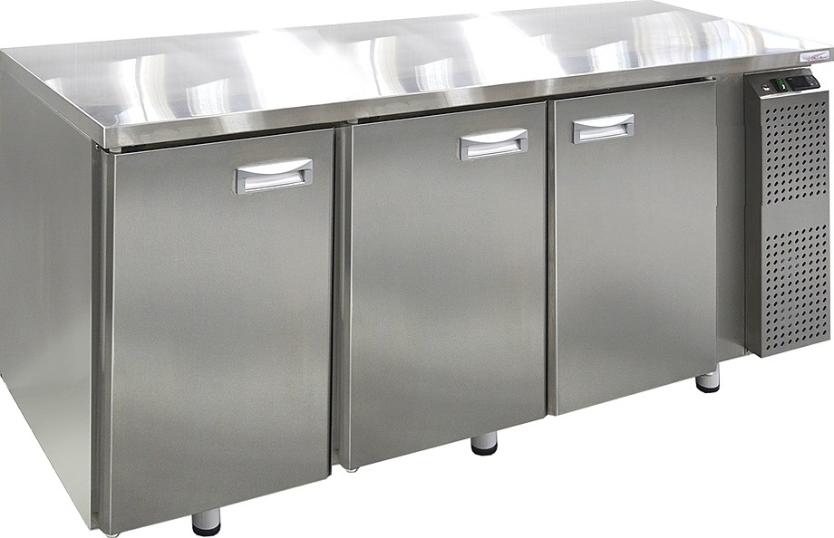 Холодильный стол Finist СХСм-600-3 используется на предприятиях общественного питания, торговли и пищевых производствах для хранения и обработки полуфабрикатов из мяса и рыбы, заготовок для салата, охлажденных напитков и прочих пищевых продуктов. Управление при помощи кнопочной панели управления, оснащенной цифровым дисплеем. 3 камеры с распашными дверцами, агрегатный отсек располагается сбоку. Стол установлен на ножки с подпятниками. Материал корпуса - нержавеющая сталь.