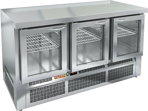 Холодильный стол HICOLD GNEG 111 HT О используется на предприятиях общественного питания, торговли и пищевых производствах для обработки различных ингредиентов и хранения продуктов, напитков и кухонных принадлежностей. Модель оснащена электронной панелью управления, динамической системой охлаждения, автоматической оттайкой, дверцами, полками и регулируемыми ножками. Материал корпуса и столешницы - высококачественная нержавеющая сталь.