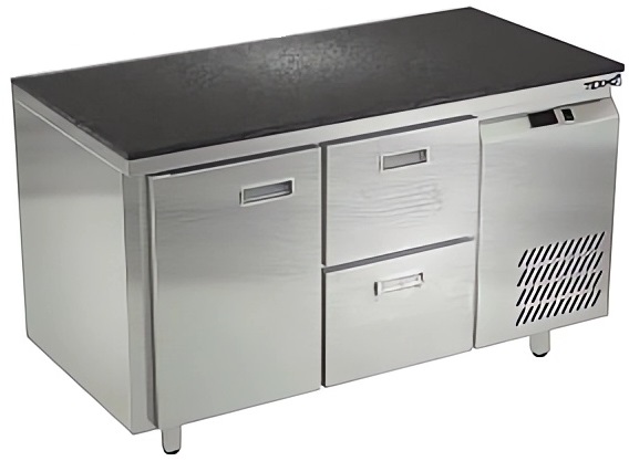 Холодильный стол Техно-ТТ СПБ/О-322/12-1306 предназначается для раскатки теста, обработки, охлаждения и кратковременного хранения продуктов и напитков на предприятиях общественного питания, торговли и пищевых производствах. Секции оснащены направляющими и ящиками с доводчиками. Материал корпуса - нержавеющая сталь AISI 430, материал столешницы - гранит (толщина 20 мм), материал задней панели и дна - оцинкованная сталь.
