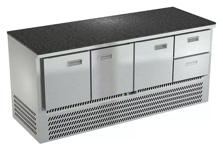 Холодильный стол Техно-ТТ СПН/О-322/32-1907 предназначается для раскатки теста, обработки, охлаждения и кратковременного хранения продуктов и напитков на предприятиях общественного питания, торговли и пищевых производствах. Секции оснащены направляющими и ящиками с доводчиками. Материал корпуса - нержавеющая сталь AISI 430, материал столешницы - гранит (толщина 20 мм), материал задней панели и дна - оцинкованная сталь.