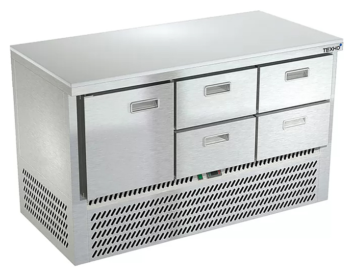 Холодильный стол Техно-ТТ СПН/О-522/14-1406 предназначается для раскатки теста, обработки, охлаждения и кратковременного хранения продуктов и напитков на предприятиях общественного питания, торговли и пищевых производствах. Секции оснащены направляющими и ящиками с доводчиками. Материал корпуса - нержавеющая сталь AISI 430, материал столешницы - полипропилен (толщина 20 мм), материал задней панели и дна - оцинкованная сталь.