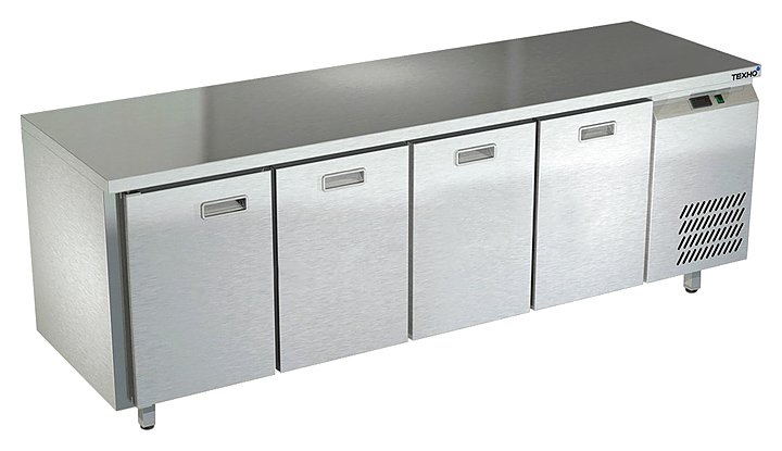 Холодильный стол Техно-ТТ СПБ/Т-122/13-2207 предназначается для раскатки теста, обработки продуктов и ингредиентов, заморозки и хранения продукции, а также для размещения теплового оборудования на предприятиях общественного питания, торговли и пищевых производствах. Двери оснащены доводчиками. Материал корпуса и столешницы - нержавеющая сталь AISI 430, материал дна и задней панели - оцинкованная сталь.