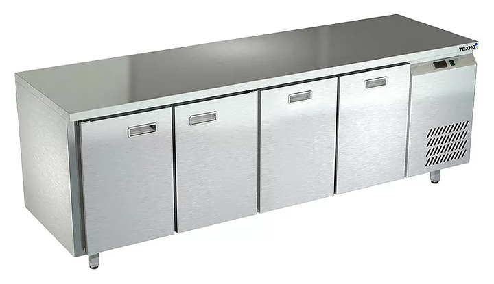 Холодильный стол Техно-ТТ СПБ/Т-122/22-2207 предназначается для раскатки теста, обработки продуктов и ингредиентов, заморозки и хранения продукции, а также для размещения теплового оборудования на предприятиях общественного питания, торговли и пищевых производствах. Двери оснащены доводчиками. Материал корпуса и столешницы - нержавеющая сталь AISI 430, материал дна и задней панели - оцинкованная сталь.