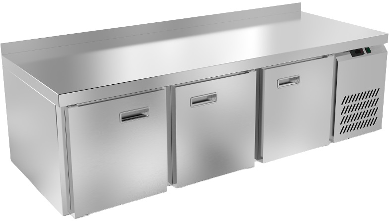 Холодильный стол Техно-ТТ СПБ/Т-221/30-1806 предназначается для раскатки теста, обработки продуктов и ингредиентов, заморозки и хранения продукции, а также для размещения теплового оборудования на предприятиях общественного питания, торговли и пищевых производствах. Двери оснащены доводчиками. Материал корпуса и столешницы - нержавеющая сталь AISI 430, материал дна и задней панели - оцинкованная сталь.