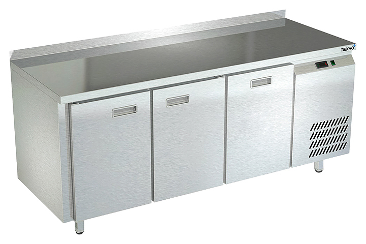 Холодильный стол Техно-ТТ СПБ/Т-222/21-1806 предназначается для раскатки теста, обработки продуктов и ингредиентов, заморозки и хранения продукции, а также для размещения теплового оборудования на предприятиях общественного питания, торговли и пищевых производствах. Двери оснащены доводчиками. Материал корпуса и столешницы - нержавеющая сталь AISI 430, материал дна и задней панели - оцинкованная сталь.