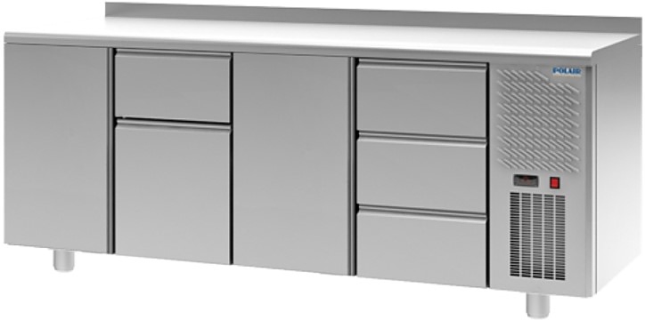 Холодильный стол POLAIR TM4-0103-G серии Grande используется на предприятиях общественного питания, торговли и пищевых производствах для хранения продуктов и обработки ингредиентов. Модель оснащена автоматической оттайкой, динамическим охлаждением, терморегулятором, двухъярусным агрегатом, уплотнитель с магнитными вставками и регулируемыми ножками. Материал изделия - высококачественная нержавеющая сталь, гарантирующая механическую прочность, термоизоляцию, герметичность и долговечность стола.