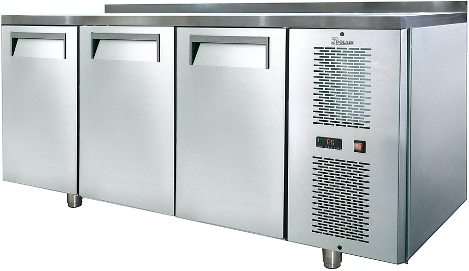 Холодильный стол POLAIR TM3GN-SC серии Grande Cubico используется на предприятиях общественного питания, торговли и пищевых производствах для хранения продуктов и обработки ингредиентов. Модель оснащена электронным управлением, терморегулятором, динамическим охлаждением, автоматической оттайкой, внутренней подсветкой и регулируемыми ножками. Материал цельнозаливного корпуса, столешницы, ножек и дверей - высококачественная нержавеющая сталь, материал теплоизоляции - пенополиуретан.