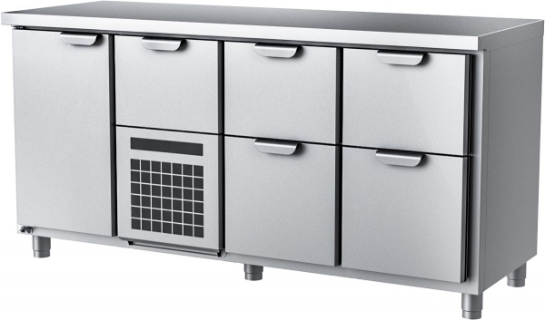 Холодильный стол HappyChef TC GH 1-CBR-2-2 используется на предприятиях общественного питания, торговли и пищевых производствах для охлаждения, хранения и обработки различных продуктов питания. Модель оснащена моющимся фильтром и регулируемыми ножками. Материал столешницы - высококачественная нержавеющая сталь AISI 304 (толщина 2 мм), материал корпуса - высококачественная нержавеющая сталь AISI 430.
