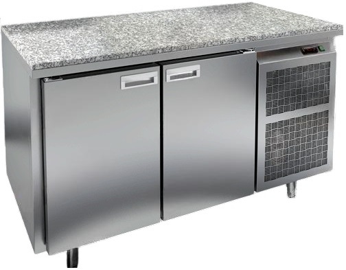 Холодильный стол HICOLD GN11/TN W О предназначен для охлаждения и кратковременного хранения продуктов питания, а также обработки ингредиентов на предприятиях общественного питания, торговли и пищевых производствах. Модель оснащена электронным управлением, автоматической оттайкой, автоматическим доводчиком дверей, фиксатором открытого положения и регулируемыми ножками. Материал корпуса - пластификат, материал столешницы - камень.