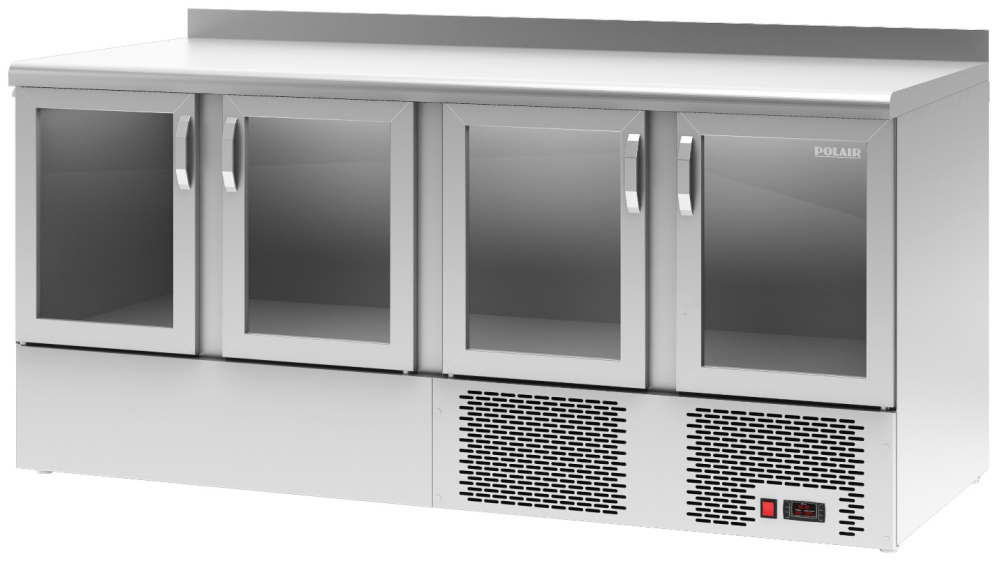 Холодильный стол POLAIR TDi4GN-G серии Grande используется на предприятиях общественного питания, торговли и пищевых производствах для хранения продуктов и обработки ингредиентов. Модель оснащена автоматической оттайкой, электронным терморегулятором, внутренней LED-подсветкой и регулируемыми ножками. Материал внешнего и внутреннего корпуса - высококачественная нержавеющая сталь, материал дверей - стеклопакет в алюминиевой раме, материал теплоизоляции - пенополиуретан, материал полок - окрашенная оцинкованная проволока, материал ручек - алюминий.
