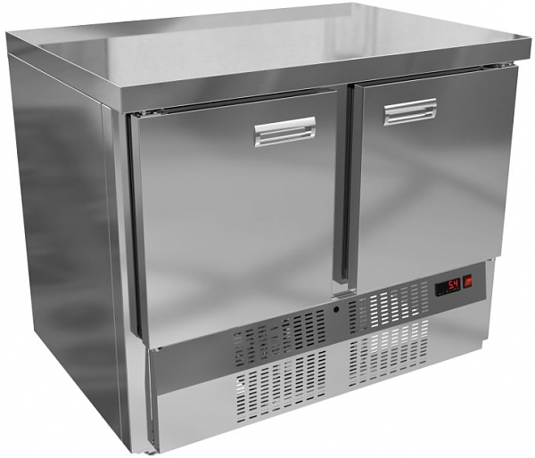 Холодильный стол KRONER СХ 2-100-70 используется для хранения продуктов и обработки ингредиентов на предприятиях общественного питания, торговли и пищевых производствах. Модель оснащена электронным управлением и автоматической оттайкой. Материал цельнозаливного корпуса, дверей и столешницы - шлифованная высококачественная нержавеющая сталь, материал задней стенки и дна - шлифованная сталь.
