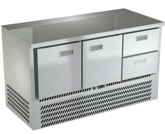 Холодильный стол Техно-ТТ СПН/О-122/22-1406 предназначен для раскатки теста, обработки, охлаждения и кратковременного хранения продуктов и напитков на предприятиях общественного питания и торговли. Модель оснащена компрессором АСС (Италия), секции - направляющими и сетчатыми полками, двери и ящики - доводчиками. Корпус выполнен из нержавеющей стали, задняя стенка - из оцинкованной стали.