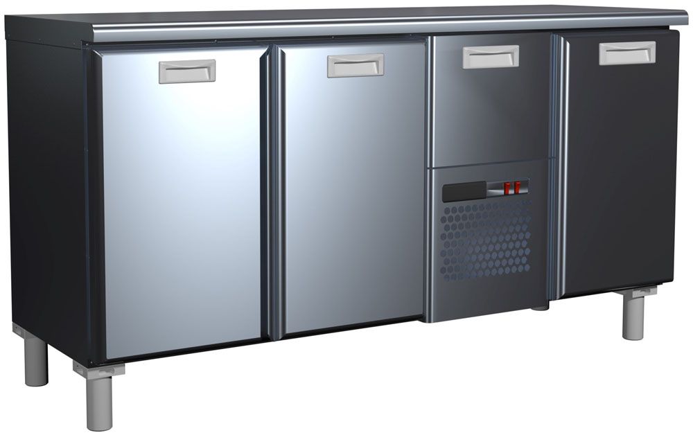 Холодильный стол Сarboma T57 M3-1 0430 (BAR-360) предназначен для раскатки теста, обработки ингредиентов для приготовления блюд, охлаждения и кратковременного хранения скоропортящихся продуктов и напитков на предприятиях общественного питания и торговли. Модель оснащена охлаждаемым ящиком и регулируемыми ножками высотой от 90 до 110 мм. Цельнозаливной корпус выполнен из нержавеющей стали, дверцы - из металла.