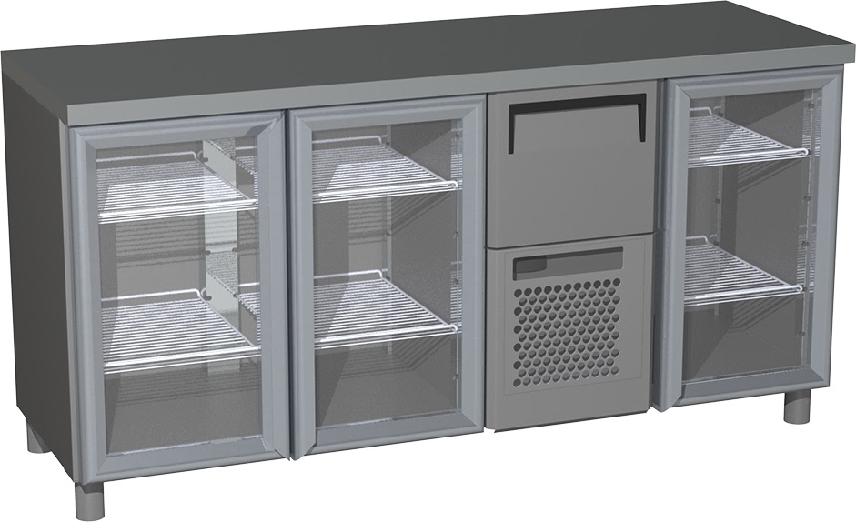 Холодильный стол Carboma T70 M3-1-G 9006 (3GNG/NT 111) предназначен для раскатки теста, обработки ингредиентов для приготовления блюд, охлаждения и кратковременного хранения скоропортящихся продуктов и напитков на предприятиях общественного питания и торговли. Модель оснащена дверью с доводчиком и регулируемыми по высоте ножками высотой от 90 до 110 мм. Цельнозаливной корпус выполнен из оцинкованной стали толщиной 50 мм, столешница - из нержавеющей стали, дверцы - из стекла.