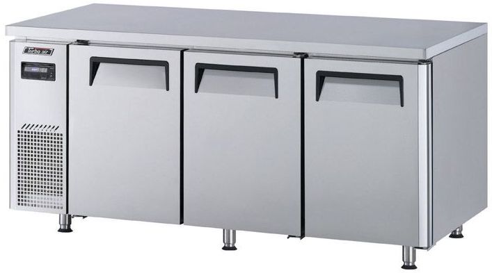 Холодильный стол Turbo air KUR18-3 состоит из рабочей поверхности, на которой можно раскатывать тесто и обрабатывать ингредиенты для приготовления блюд, и камеры, предназначенной для охлаждения и кратковременного хранения скоропортящихся продуктов и напитков на предприятиях пищевой промышленности, общественного питания и торговли. Корпус выполнен из нержавеющей стали с применением полиуретановой теплоизоляции высокой плотности и уплотнения из теплоэффективного АБС-пластика (акрилонитрилбутадиенстирола), не пропускающего конденсата, оборотная сторона и низ - из оцинкованной стали, пол - из нержавеющей стали с алюминиевыми вставками по бокам и сзади, регулируемые полки - из толстой проволоки с виниловым покрытием.