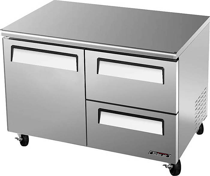 Морозильный стол Turbo air CMUF-60-2D-2 предназначается для заморозки и хранения продуктов и полуфабрикатов на предприятиях общественного питания, торговли и пищевых производствах. Рабочая поверхность позволяет производить удобную раскатку теста и обработку ингредиентов. Стол оснащен динамической системой охлаждения, интеллектуальной системой разморозки и аналоговым управлением. Материал корпуса - нержавеющая сталь (оборотная и нижняя часть - гальванизированная сталь) с пожаробезопасными стенками (толщина = 60 мм), материал пола - нержавеющая сталь с алюминиевыми вставками, материал регулируемых полок - стальная проволока с виниловым покрытием, материал петель - нержавеющая сталь.