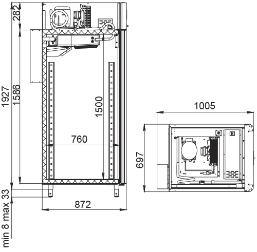 В настоящее время завод применяет регулируемые ножки, обеспечивающие высоту холодильных шкафов POLAIR – среднетемпературных – 1960 мм и низкотемпературных – 1996 мм. На эксплуатационные свойства холодильных шкафов POLAIR данная особенность не влияет. В связи с применением регулируемых по высоте ножек разных производителей общая высота холодильных шкафов может варьироваться следующим образом: для среднетемпературных шкафов объемом 500, 700, 1000 и 1400 литров высота составляет 2028 мм или 1960 мм, низкотемпературных шкафов – 2064 мм или 1996 мм.
