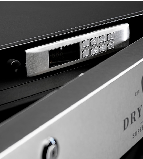 Шкаф для вызревания мяса DRY AGER DX 1000 Premium S предназначен для сухого вызревания говядины, а также производства мясных закусок и колбасных изделий на предприятиях пищевой промышленности, общественного питания и торговли. Модель оснащена электронным контроллером температуры и влажности и регулируемыми по высоте ножками. Дверная рама выполнена из нержавеющей стали, корпус - из стали, окрашенной порошковой краской, задняя стенка - из чёрной стали с матовой поверхностью, дверца - из стекла с УФ-фильтром.