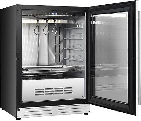 Шкаф для мяса MeatAge VI60 WT предназначается для охлаждения и вызревания мяса, ветчины и салями на предприятиях общественного питания и торговли, пищевых производствах, отелях, офисах, а также в домашнем использовании. Шкаф оснащен белой LED подсветкой внутреннего объема, тачпадом с подсветкой, акустической сигнализацией и запираемой дверью. Материал корпуса и комплектующих - нержавеющая сталь AISI 304, материал двери - ударопрочное закаленное стекло.