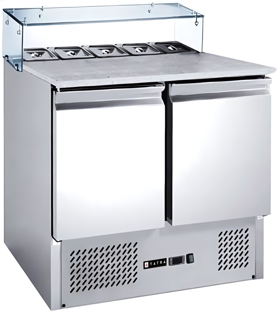 Холодильный стол Tatra TPZGNL2 VG ST используется на предприятиях общественного питания, торговли и пищевых производствах для приготовления пиццы и хранения заготовок. Модель оснащена цифровым термостатом, стеклянным козырьком, эластичным уплотнителем и регулируемыми ножками. Материал корпуса - высококачественная нержавеющая сталь.