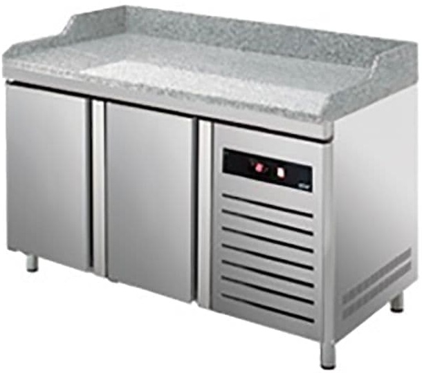 - Конструкция гранитной отбортовки подходит для установки витрины для ингредиентов, что позволяет создавать рабочую станцию для топпингования тестовых заготовок пиццы