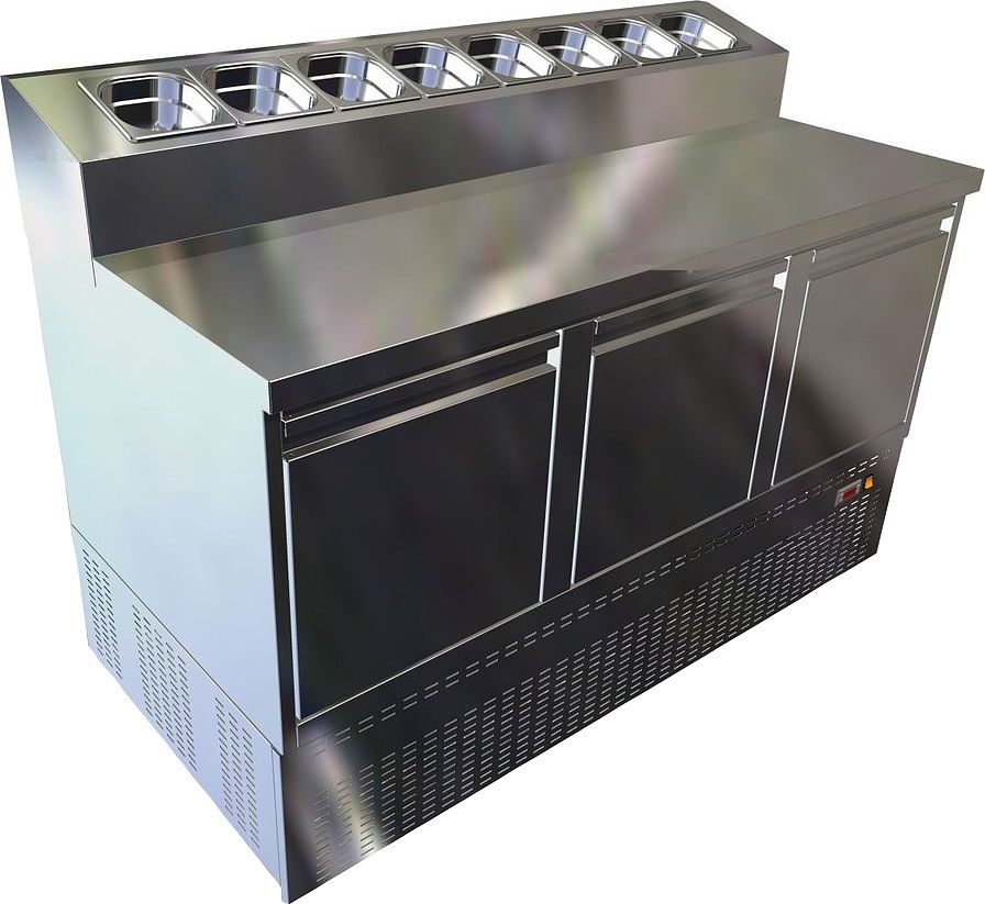 Холодильный стол Gastrolux СОП3-146/3Д/Sр серии Special предназначен для раскатки теста и обработки ингредиентов для приготовления пиццы, охлаждения и кратковременного хранения скоропортящихся продуктов и напитков на предприятиях общественного питания и торговли. Корпус и рабочая поверхность выполнены из нержавеющей стали AISI 430.