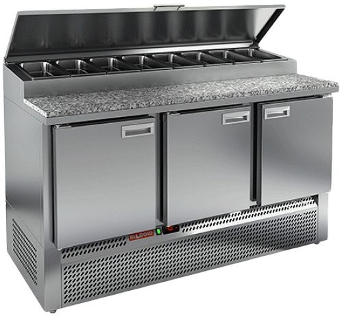 Охлаждаемый стол для пиццы HICOLD PZE1-111/GN (1/3H) выполнен из нержавеющей стали . Верх стола накрыт каменной столешницей. В верхней части стола устанавливаются гастроемкости , максимальной глубиной 150 мм.