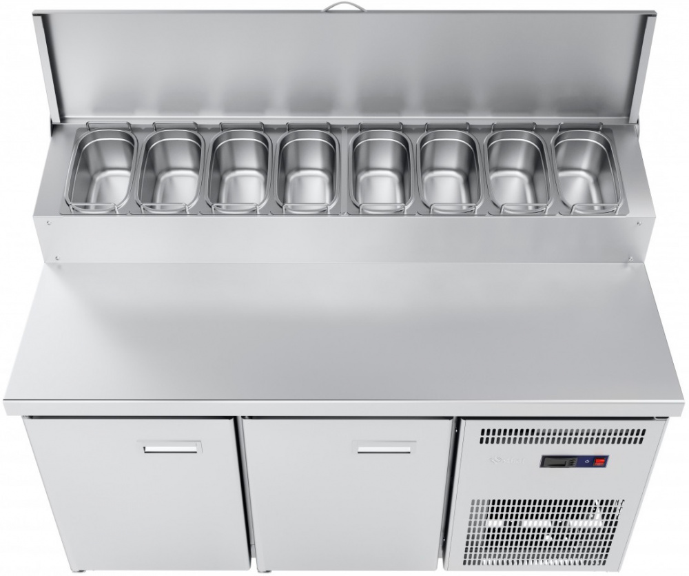 Конструкция выполнена из высококачественной нержавеющей стали. Изоляция стенок и полости стола выполнена методом заливки пенополиуретаном. Эксплуатация стола допускается при температуре окружающей среды от 12 до 42 °C и относительной влажности от 40 до 70%.