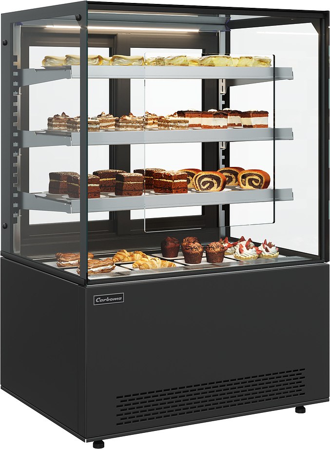 Витрина кондитерская закрытая Carboma KC71-130 VV 1,2-2 COSMO используется для демонстрационной выкладки и кратковременного хранения напитков, хлебобулочных и кондитерских изделий на предприятиях общественного питания, торговли и пищевых производствах. Модель оснащена 3 регулируемыми полками, встроенными ценникодержателями, LED-освещением полок и регулируемыми ножками. Материал корпуса - сталь и пластик, материал термоизоляции - пенополиуретан.