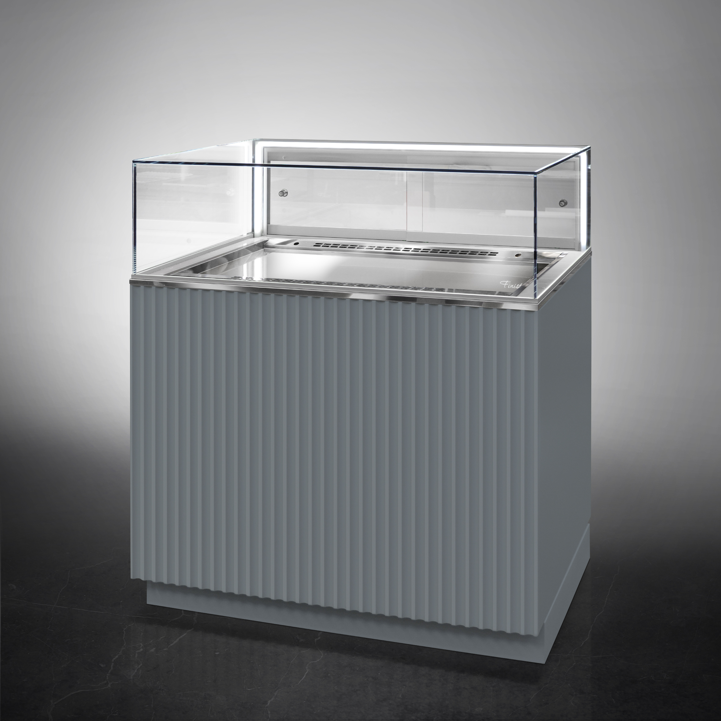 Холодильная витрина Finist GLASSIER LUX GL-11/55/3 используется для демонстрационной выкладки, охлаждения и хранения кондитерских и хлебобулочных изделий на предприятиях общественного питания и торговли. Модель оснащена микропроцессорным блоком, автоматической оттайкой, цоколем, светодиодной подсветкой и удобными дверцами купе. Материал фронтальных и боковых панелей облицовки - МДФ панели, материал купола - просветленное стекло, материал дна - высококачественная нержавеющая сталь.