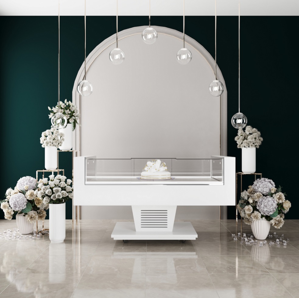 Витрина кондитерская Finist ROYAL R-18 используется для демонстрационной выкладки, охлаждения и хранения кондитерских и хлебобулочных изделий на предприятиях общественного питания и торговли. Модель оснащена микропроцессорным блоком, охлаждаемой столешницей, регулируемой подсветкой светодиодной , дверьми-купе и колесами с фиксаторами.. Материал фронтальных и боковых панелей облицовки - МДФ панели, материал столешницы - кварцевый агломерат.
