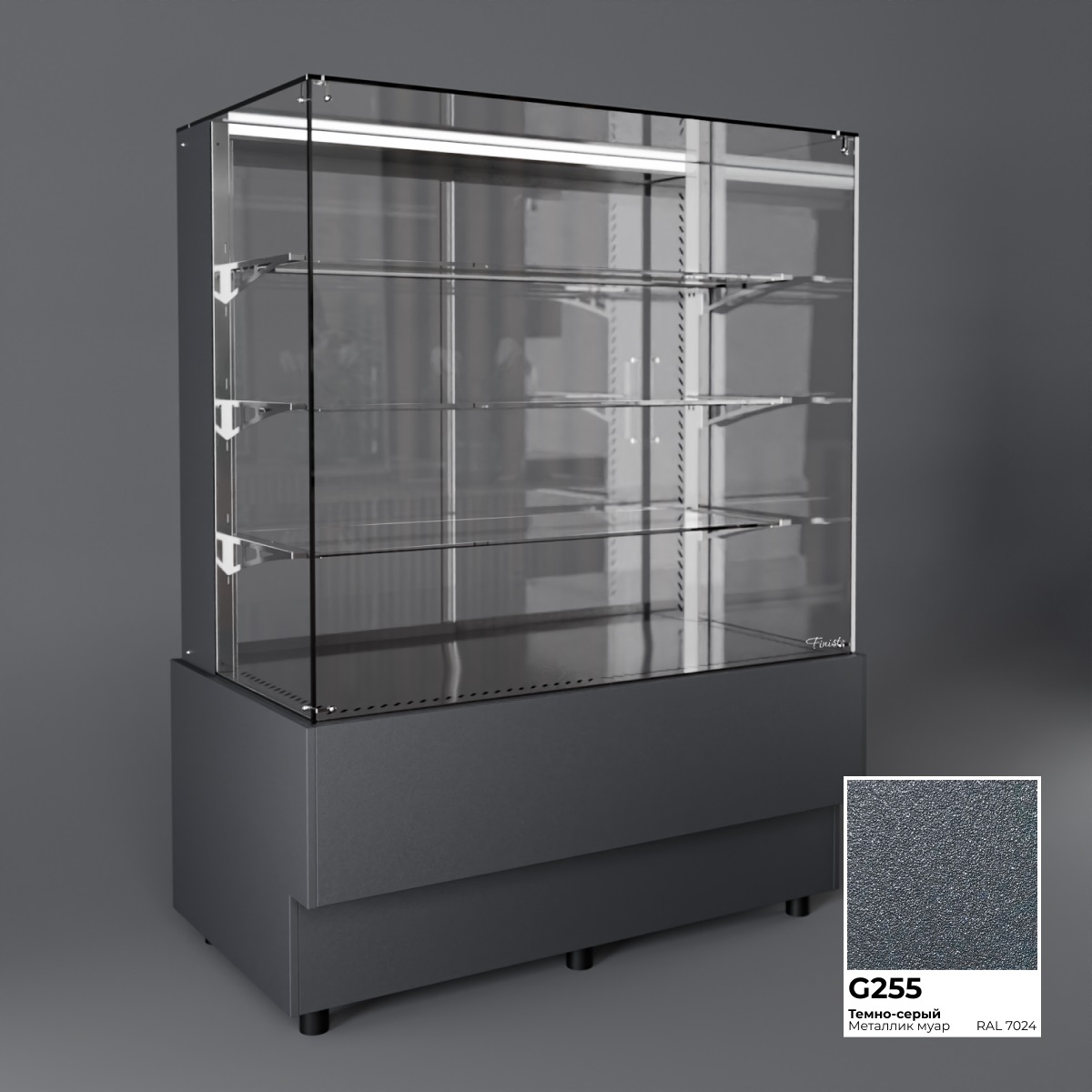 Холодильная витрина Finist AIR A-14-7-163 используется для демонстрационной выкладки, охлаждения и хранения кондитерских и хлебобулочных изделий на предприятиях общественного питания и торговли. Модель оснащена микропроцессорным блоком, автоматической оттайкой, светодиодной подсветкой каждой полки, 3 стеклянными полками и удобными дверцами купе. Материал цельнозаливного корпуса - окрашенная сталь, материал купола и полок - просветленное стекло, материал дна - зеркальная нержавеющая сталь.