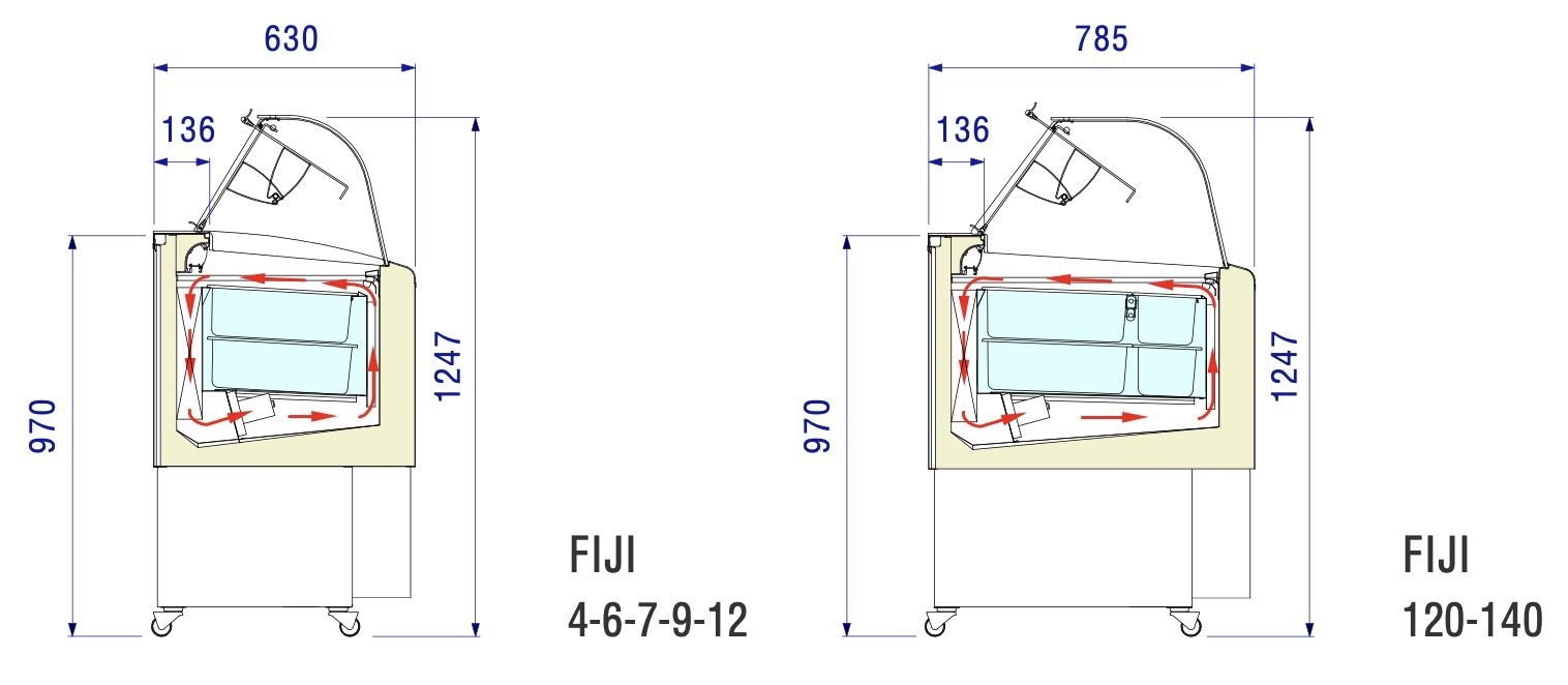 Витрина для мороженого ISA Fiji 9 используется на предприятиях общественного питания и торговли для демонстрации и хранения мороженого, сорбета и йогурта-мороженого. Каркас изготовлен из углеродистой стали, окрашенной порошковой краской, внутренняя и внешняя оболочки - из пластифицированной стали, поворотная крышка со стороны продавца - из метакрилата. Цельный корпус имеет изоляцию из пенополиуретана, вспененного углекислотой, без использования озоноразрушающих веществ.