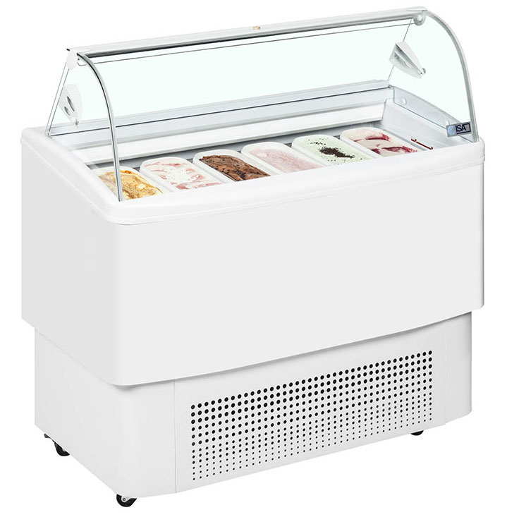Витрина для мороженого ISA Fiji 6 используется на предприятиях общественного питания и торговли для демонстрации и хранения мороженого, сорбета и йогурта-мороженого. Каркас изготовлен из углеродистой стали, окрашенной порошковой краской, внутренняя и внешняя оболочки - из пластифицированной стали, поворотная крышка со стороны продавца - из метакрилата. Цельный корпус имеет изоляцию из пенополиуретана, вспененного углекислотой, без использования озоноразрушающих веществ.