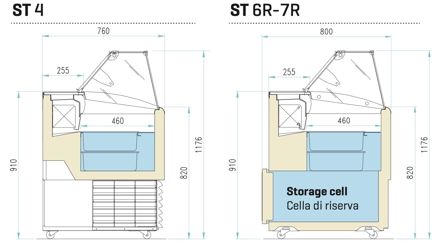 Витрина для мороженого ISA Isetta ST 6R используется на предприятиях общественного питания и торговли для демонстрации и хранения мороженого, сорбета и йогурта-мороженого. Каркас витрины изготовлен из углеродистой стали, окрашенной порошковой краской, внутренняя и внешние оболочки - из пластифицированной стали, поворотная крышка со стороны продавца - из метакрилата. Цельный корпус имеет изоляцию из пенополиуретана, вспененного углекислотой, без использования озоноразрушающих веществ.
