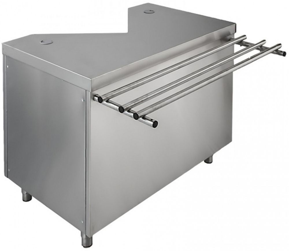 Кассовая кабина Rada ККУ-11/7 линии раздачи Школьник оснащена направляющими для подносов и регулируемыми по высоте ножками. Столешница и полки выполнены из нержавеющей стали AISI 304, боковые и передние панели - из окрашенной в серый цвет оцинковки. Внизу предусмотрена дополнительная полка.