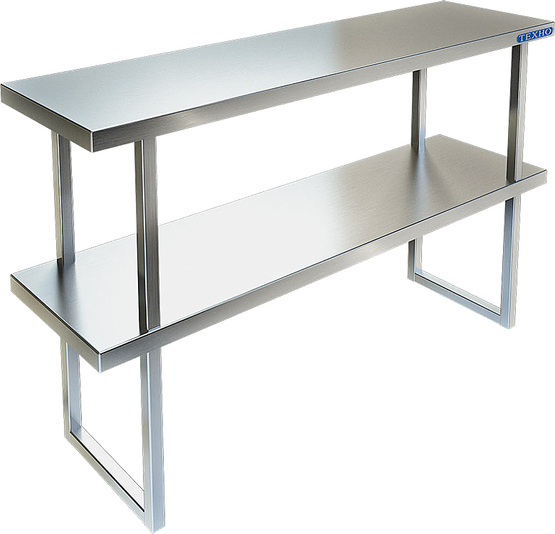 Кухонная двухъярусная полка Техно-ТТ ПН-820/1700 предназначена для хранения посуды, различного инвентаря и сухих продуктов на предприятиях общественного питания, торговли и пищевых производствах. Изделие крепится к столешнице при помощи болтов через отверстия в боковинах. Материал разборного каркаса - нержавеющая сталь AISI 430, боковины из трубы 20x20 мм.