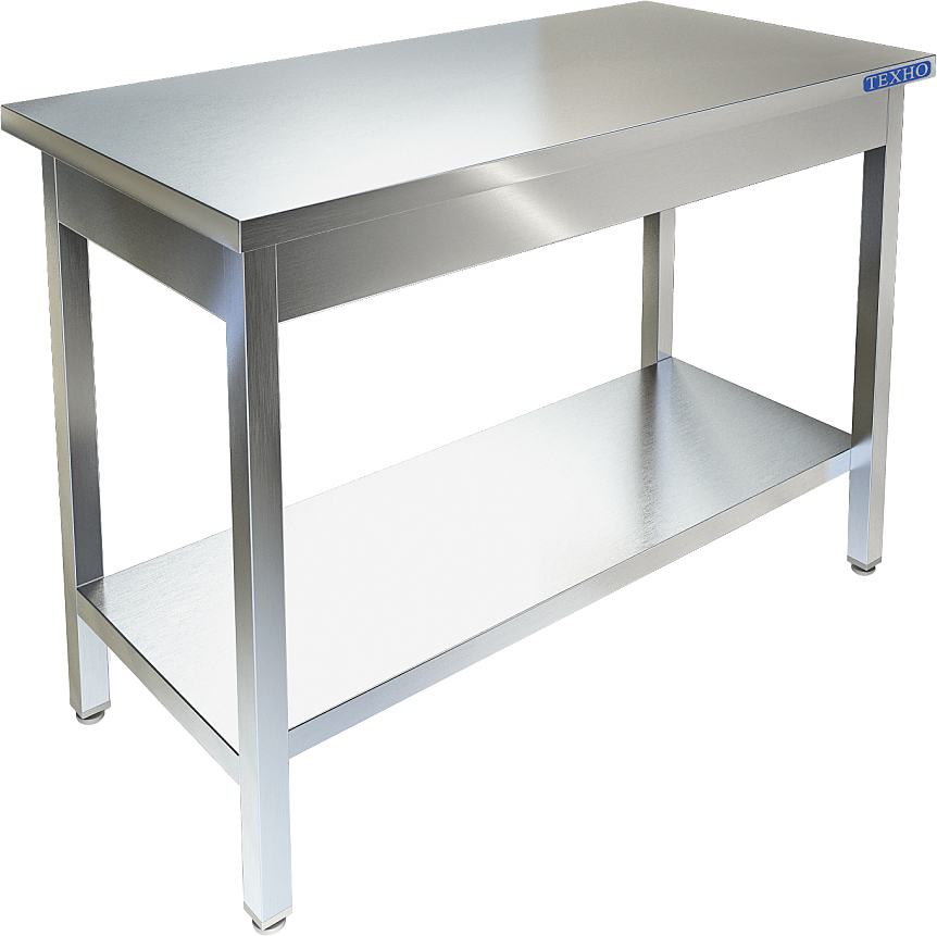 Производственный стол Техно-ТТ СП-123/1807 предназначен для разделки и обработки пищевых продуктов, а также для расстановки и хранения посуды и кухонного инвентаря на предприятиях общественного питания и торговли. Модель оснащена регулируемыми по высоте ножками, что позволяет компенсировать неровности пола. Разборный каркас выполнен из трубы 40х40 мм из нержавеющей стали AISI 304, столешница - из нержавеющей стали AISI 304 и ЛДСП, полка - из нержавеющей стали.