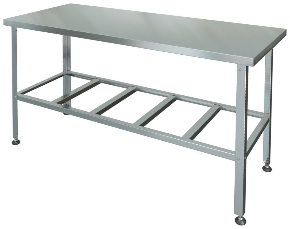 Производственный стол Марихолодмаш СРП-0-0,4/1,8 предназначен для раскатки теста и обработки ингредиентов для приготовления блюд, а также может использоваться в качестве дополнительного места для установки кухонных приборов на предприятиях общественного питания и торговли. Рабочая поверхность, усиленная ЛДСП толщиной 15 мм, выполнена из нержавеющей стали AISI 430 толщиной 0,5 мм, ножки с регулируемыми опорами - из уголка 40х40 мм из оцинкованной стали толщиной 1 мм с подгибом краёв вовнутрь.