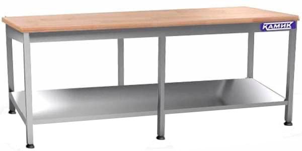 Кондитерский стол КАМИК С-БУК-4208+П используется на предприятиях общественного питания и торговли для работы с тестом и приготовления кондитерских изделий. Каркас стола выполнен из нержавеющей стали AISI 430, столешница - наборный бук толщиной 40мм. Ножки - труба 40х40 мм.