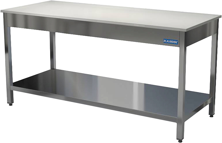 Разделочный стол КАМИК С-СПР-4168+П используется на предприятиях общественного питания и торговли для разделки и приготовления различных блюд. Каркас стола выполнен из нержавеющей стали AISI 430, столешница - полипропилен толщиной 20мм. Ножки - труба 40х40 мм.