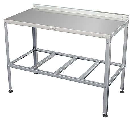 Производственный стол ATESY СР-Б-1-1300.700-02 серии Бюджет используется на предприятиях общественного питания, торговли и пищевых производствах для раскатки теста, приготовления различных блюд и хранения кухонных принадлежностей. Материал рабочей поверхности – нержавеющая сталь AISI 430 усилена листом ЛДСП (толщина 16 мм), материал каркаса и решетчатой полки – оцинкованная сталь (уголок 40x40 мм толщиной 1.2 мм), конструкция - разборная.