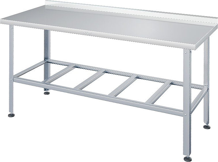 Производственный стол ATESY СР-С-1-700.800-02 серии Стандарт используется на предприятиях общественного питания, торговли и пищевых производствах для раскатки теста, приготовления различных блюд и хранения кухонных принадлежностей. Материал рабочей поверхности – нержавеющая сталь AISI 430 усилена листом ЛДСП (толщина 16 мм), материал каркаса и решетчатой полки – оцинкованная сталь (уголок 40x40 мм), конструкция - разборная.