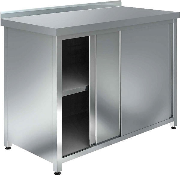 Производственный стол Assum СПКБ-12/7 серии Premium используется на предприятиях общественного питания, торговли и пищевых производствах для работы с тестом, обработки ингредиентов перед приготовлением различных блюд и хранения кухонного инвентаря. Материал столешницы - нержавеющая сталь AISI 430 с листом ЛДСП, материал полки, дверей, стенок, дна - нержавеющая сталь AISI (труба 40х40 мм толщиной 0.7 мм), материал опор ножек - пластик.
